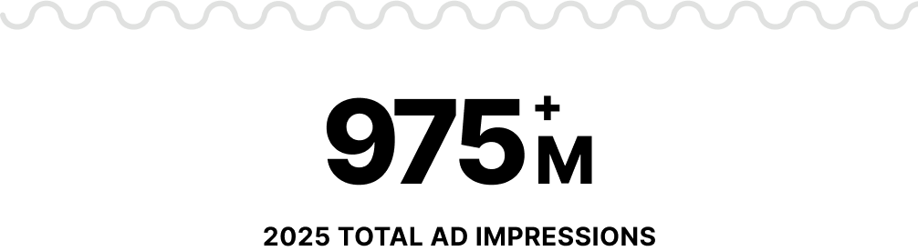 We aim to create 360 degree opportunities for all of our clients across their channels as often as possible. As of 2025, our client roster has a reach of more than 25M downloads per month, 600M YouTube views per month, 8M email newsletter subscribers, and over 40M social media followers. We’ve helped some of our brand partners achieve more than 500% return on investment by placing the right ads on the right media.